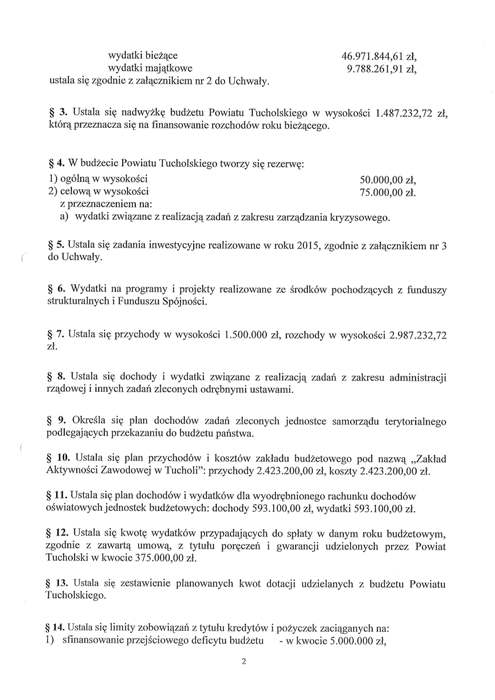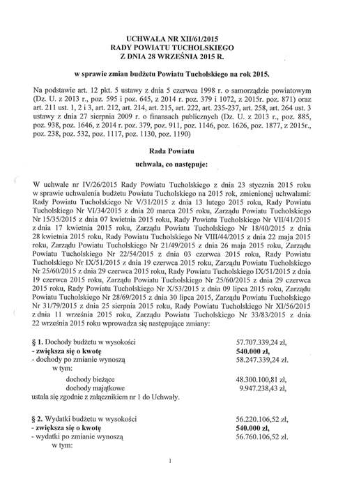 Uchwała nr XII/61/2015 Rady Powiatu Tucholskiego z dnia 28 września 2015 w sprawie zmian budżetu Powiatu Tucholskiego na rok 2015