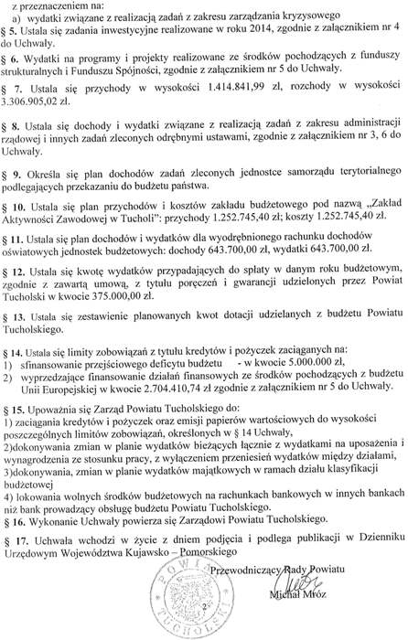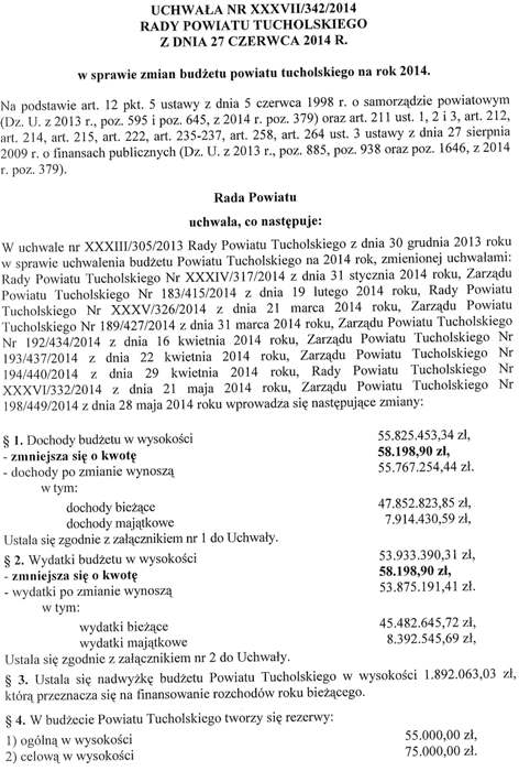 Uchwała Nr XXXVII/342/2014 Rady Powiatu Tucholskiego z dnia 27 czerwca 2014 r.w sprawie zmian budżetu Powiatu Tucholskiego na 2014 r.