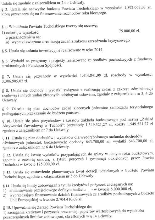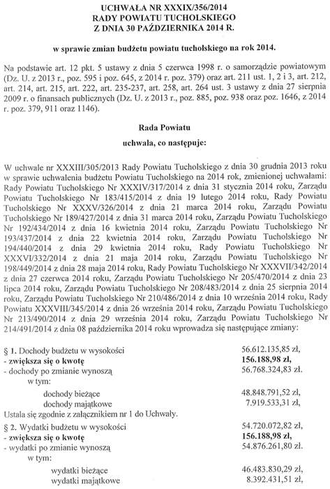 Uchwała Nr XXXIX/356/2014 Rady Powiatu Tucholskiego z dnia 30 października 2014 r. w sprawie zmian budżetu Powiatu Tucholskiego na 2014 r.