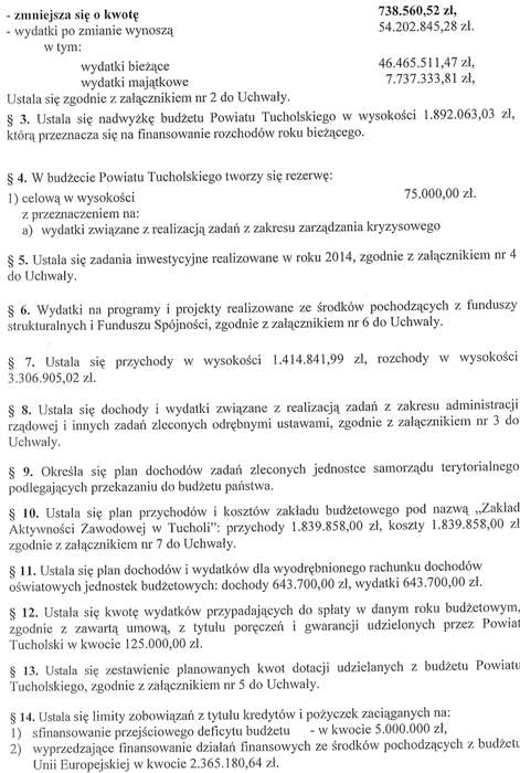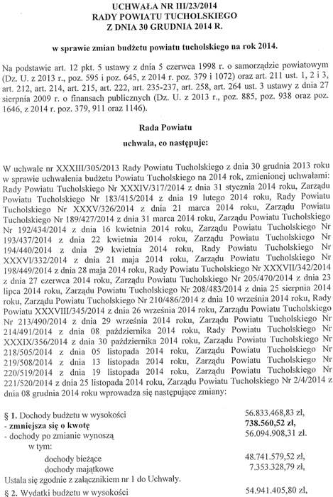 Uchwała Nr III/23/2014 Rady Powiatu Tucholskiego z dnia 30 grudnia 2014 r. w sprawie zmian budżetu Powiatu Tucholskiego na 2014 r.