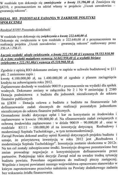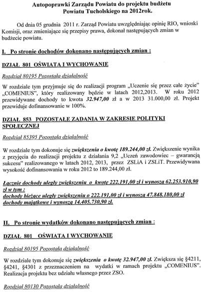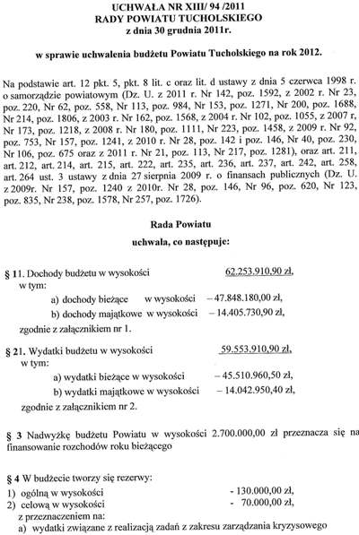 Uchwała Nr XIII/95/2011 Rady Powiatu Tucholskiego z dnia 30 grudnia 2011 r. w sprawie uchwalenia budżetu Powiatu Tucholskiego na 2012 r.