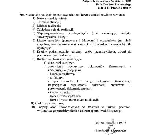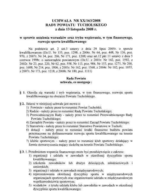 Uchwała nr XX/163/2008 Rady Powiatu Tucholskiego z dnia 13 listopada 2008 w sprawie ustalenia warunków oraz trybu wspierania, w tym finansowego, rozwoju sportu kwalifikowanego